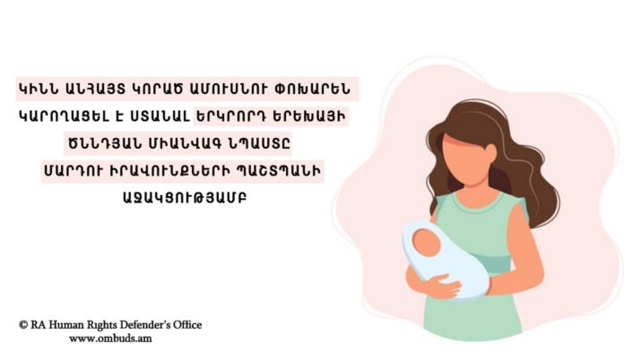 Մարդու իրավունքների պաշտպանի աշխատակազմի և Սոցիալական ապահովության ծառայության հետ համագործակցության արդյունքում կինը կարողացել է ստանալ երկրորդ երեխայի ծննդյան միանվագ նպաստը։