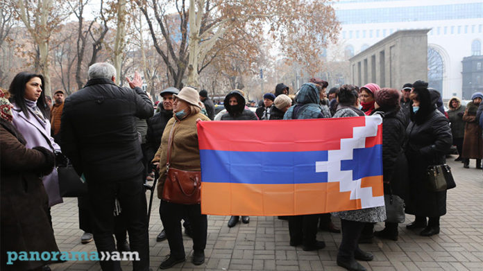 Տեղահանված արցախցիները բողոքի ակցիա իրականացրին կառավարության շենքի դիմաց, ապա քայլերթով շարժվեցին դեպի Արտաքին գործերի նախարարության շենք։