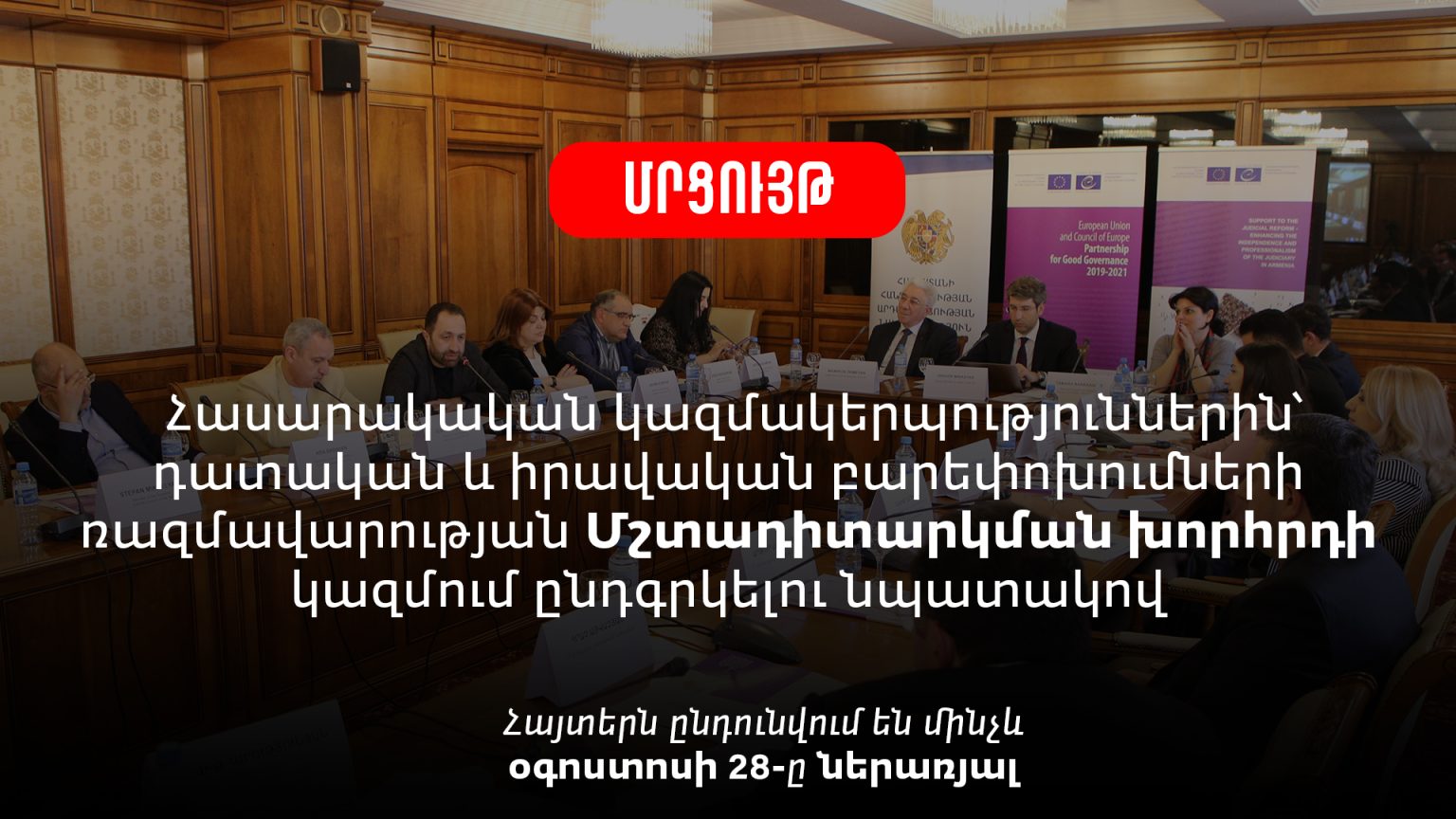 Ղեկավարվելով վերոնշյալով՝ Արդարադատության նախարարությունը հայտարարում է, որ Մշտադիտարկման խորհրդի կազմում ընդգրկվելու համար թեկնածության հայտեր կարող են ներկայացվել հետևյալ կարգով.